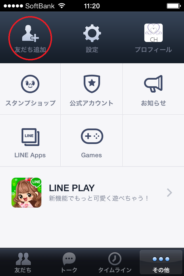 1.「その他」のタブから「友達追加」をタップ♪