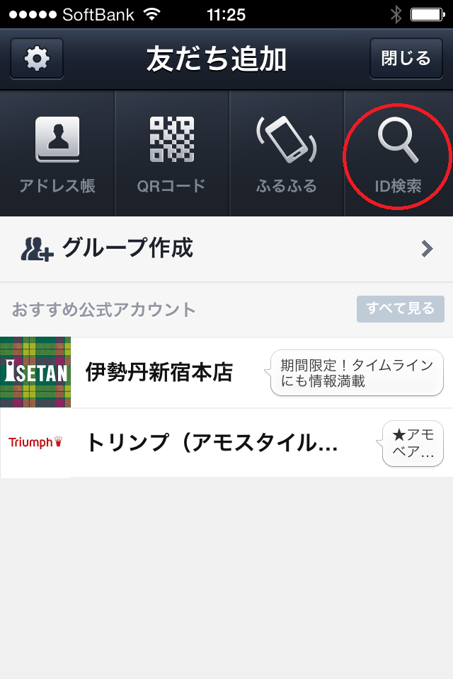 2.「ID検索」をタップ♪