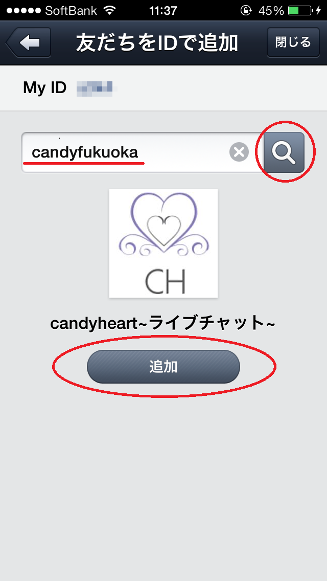 3.「candyfukuoka」と入力し「友達リストに追加」をタップ